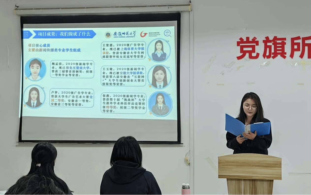在展示过程中,各团队呈现的项目亮点纷呈。其中,由2020级新闻学专业鲍孟佳负责的“数喻理”团队,通过深入的数据收集与分析,将复杂的数据转化为直观、易懂的可视化形式,成功探索出数据新闻的新路径,该项目荣获了省级奖项等多项荣誉;2020级摄影专业陈宏负责的晨曦摄影工作室,取得系列成果,积极开展公益创作,项目成果获得各类专业展赛奖项。此外,2020级动画专业李斌针对非遗保护进行了深入研究,利用数字动画技术,将徽州古村落进行了数字化呈现;2020级广告高文洁则对国潮品牌传播的影响因素进行了量化研究,并撰写了一篇高质量的论文;2020级网新专业张希雯所研究的“轻”茶助农公益项目,通过撰写推文的方式,积极推广当地茶叶,有效促进了当地茶叶产业的发展。汇报结束后,评审老师对各个项目进行了精彩的点评,既肯定了学生们在创新创业方面的努力和成果,也指出了项目中存在的问题和不足,并提出了宝贵的改进建议。