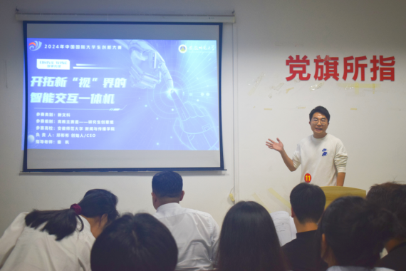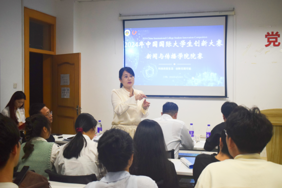本网讯 (bat365在线中国登录入口 陈晶秋 戴琳) 守正创新担使命,不忘初心促未来。2024年4月29日晚,bat365在线中国登录入口在学院楼302会议室举办2024年中国国际大学生创新大赛院级选拔赛。广告学专业主任罗铭、播音与主持艺术专业教师王霞霞、广告学专业教师何同亮、辅导员马星宇担任评委,晋级院赛的15个项目的负责人以及项目组的主要成员共同参加比赛。