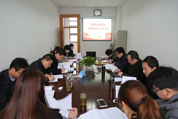 3月19日,bat365在线中国登录入口召开2018年党委中心组扩大学习会,专题传达学习党的十九大和全国“两会”精神。院党委书记胡靖主持会议,院党委委员和党务骨干参加了专题学习会。