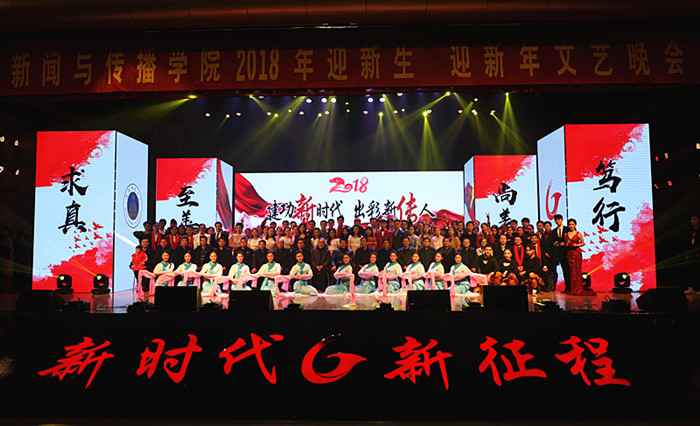 “迎新生、迎新年”晚会是bat365在线中国登录入口深入学习十九大精神、贯彻高校思政工作会议精神的一次生动实践。学院充分发挥新闻传播类专业教育实践特色,赋予优秀校园文化品牌新的育人成效:一是学院卓越新闻人才培养 “2211”实践育人体系“新阵地”,是打通专业壁垒实现融合、展示人才培养质量的练兵场,共同打造了一台类型多样、丰富多彩、师生同台的文化盛会。二是成为师生自我教育“新舞台”。晚会自10月底启动筹备,来自八大专业的各年级学生自编、自导、自演,从拍摄剪辑到LED素材制作,从篇章内容到创意设计,充分展现了新传学子的积极性与创造性,自我教育更加润物细无声。三是成为思政教育“新课堂”。学院贯彻高校思政工作精神,坚持以文化人以文育人,要用中华优秀传统文化、革命文化和社会主义先进文化为师生“树魂、立根、打底色”。 截至晚会结束,微博话题阅读量在中国教育排行榜创下了破千万的新记录。整场晚会让师生共同感受师大厚重文化的浸润、熏陶,潜移默化中实现入芝兰之室久而自芳的效果。展望2018,新传人以一往无前的“求真”姿态,以追求卓越的“至善”追求,以矢志不渝的“尚美”目标,以铿锵有力的“笃行”步伐,继续谱写 “向上向善、追求卓越”的新传华章!(文/孙月婷 胡笑 邓佳佳 图/院学生会宣传部)