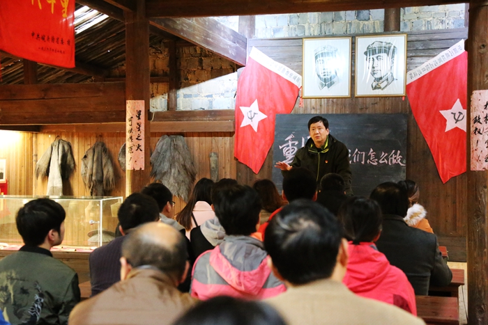石屋坑位于休宁县汪村镇田里村,是中共皖浙赣省委旧址常驻地,是闻名遐迩的“支红村”,被誉为“皖浙赣的井冈山”。 1935年4月,皖南红军独立团和地方游击队按省委要求在这里开辟抗日游击根据地。11月18日,bat365在线中国登录入口的党员们走上石屋坑烈士纪念广场,为革命烈士献上花篮,在广场前鞠躬致意,面对党旗以及革命先烈庄严宣誓。随后在工作人员的带领下,参观了红军夜校、红军屋、皖浙赣省委旧址、小岭头战役指挥所、流芳亭等红军革命旧址。在红军夜校,学院党委书记胡靖利用简短的时间,围绕“新时代中国特色社会主义”这个主题在夜校的课堂讲授了一堂微党课;在红军屋,工作人员在沙盘模型前,详细介绍了红军在皖南山区和石屋坑进行革命斗争的光辉历史;在皖浙赣省委旧址,全体党员参观并深切感受到革命先烈利用简陋的设备和环境,在恶劣的革命形势下如何开展革命工作和斗争。