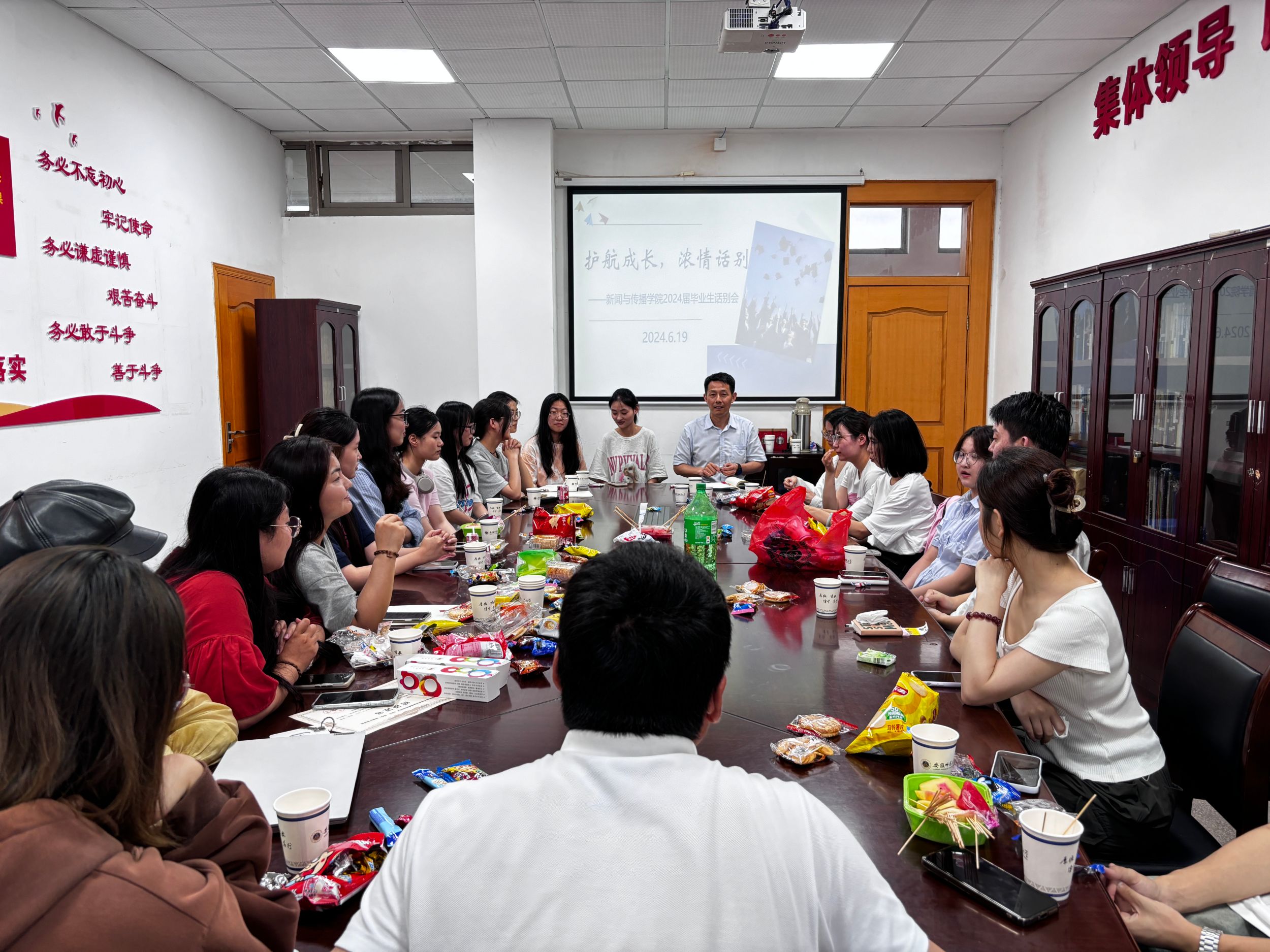 座谈会凝心聚力,共话未来新篇章。在2024届本科生即将启程奔赴山海之际,bat365在线中国登录入口于6月19日下午举办欢送本科毕业生师生座谈会。座谈会为同学们准备了各类零食,会议在轻松融洽的氛围中展开。学院党委书记张师帅、党委副书记吴青山与同学们深情回顾了在bat365在线中国登录入口求学的美好时光,毕业生代表畅所欲言,表达了对学校和学院四年培养的感激之情,并从选课制度、生涯规划、实习实践等多方面为学院提出了建设性意见和建议。参会老师与同学们进行了热烈的交流并对毕业生送上了诚挚的祝福。