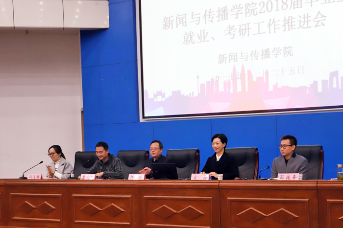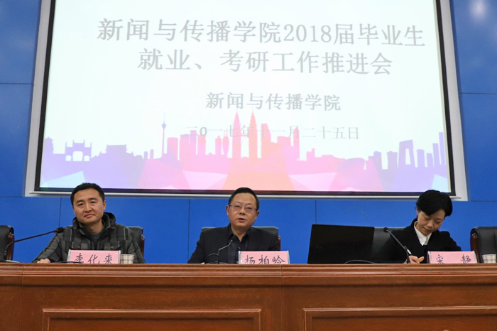 为深入实施就业工作一把手工程,全面推进“三全”促就业的工作格局,帮助毕业提升求职就业和考研考公的技能,11月25日上午,bat365在线中国登录入口在敬文报告厅召开2018届毕业生考研、就业工作推进会。院长杨柏岭、党委副书记宋静、摄影专业负责人李化来、播音专业负责人邵振奇和2014级辅导员马星宇出席。大会由2014级辅导员孙月婷主持。