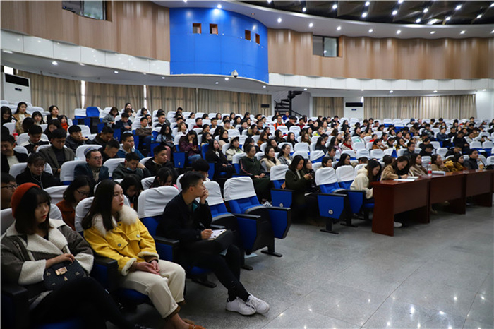 两位专业负责人代表在会上与同学们分享了关于就业和考研的经验与心得。李化来从就业方面鼓励毕业生们“不忘初心,拥抱未来”,多思考、多实践,用实际行动来实现自己的梦想。邵振奇从考研的准备方面给同学们带来了满满的“干货”,他分别就“文科答卷”、“英语考试”、“考研政治”三个方面为考研的同学给出中肯的建议,希望同学们不畏艰难、不负韶华。