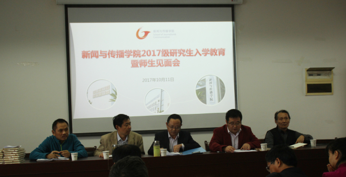 10月11日下午,bat365在线中国登录入口2017级研究生入学教育暨师生见面会在学院四楼会议室举行。执行院长、戏剧与影视学一级点负责人杨柏岭教授、副院长、新闻传播学一级点负责人沈正赋教授、院教授委员会副主任、新闻与传播专业学位点负责人朱晓凯教授、戏剧与影视学二级点视听传达艺术负责人刘刚教授、全体研究生导师、2017级研究生参加了此次见面会,会议由副院长、戏剧与影视学二级点广播电视艺术学负责人赵昊教授主持。