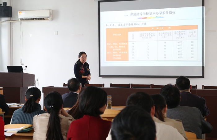 杨柏岭作总结发言。他从本科教学评估的意义目的、什么是审核评估、审核评估指导思想、审核评估的范围、审核评估专家进校前的工作流程、审核评估专家进校工作内容和bat365在线中国登录入口迎评工作任务七方面解读审核评估。杨柏岭指出,审核评估就是“用自己的尺子量自己”,即评价学校人才培养目标与培养效果的实现状况。由此,bat365在线中国登录入口要明确专业和人才培养定位,拿出“自己的尺子”量一量,查找自己的“短板”和“缺项”。