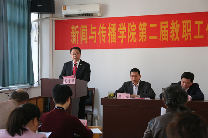 李琳琦为大会致辞。他说,五年来,bat365在线中国登录入口不忘初心,牢记使命,坚持以部校共建新闻学院和“双一流”建设为牵引,大力实施平台领院、制度立院、内涵兴院、人才强院战略,不断优化学院文化生态和育人环境,构建向上向善的价值导向,营造了风清气正、干事创业的发展氛围,各个方面都取得了明显进展。他代表校党委和校教代会谈四点希望和要求:一要提高认识,深刻把握新形势下建立学院教代会制度的必要性和重要性;二要加强领导,形成“党委领导、行政支持、工会运作、群众参与”的教代会工作格局;三要积极探索,不断完善学院教代会的组织制度、工作制度及运作程序;四要发挥作用,进一步推动学院教代会职权的落实和学院事业发展。他提出希望大家审时度势,高瞻远瞩,认清历史方位,抢抓发展机遇,谋划发展蓝图,推动事业发展,力争将学院建成新闻传播人才培养基地、宣传思想文化系统干部职工培训基地和宣传思想文化领域研究基地,奋力开创一流新闻学院建设新局面。