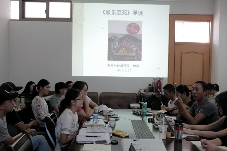 翟光勇老师做了简短的开场白。随后,魏岚老师主讲尼尔·波兹曼的经典著作《娱乐至死》。该书是对20世纪后半叶美国文化中最重大变化的探究和哀悼:印刷术时代步入没落,而电视时代蒸蒸日上;电视改变了公众话语的内容和意义;政治、宗教、教育和任何其他公共事务领域的内容,都不可避免的被电视的表达方式重新定义。魏岚老师进行了作者介绍和著作相关内容阐释。她认为波兹曼的电视娱乐化研究是有价值有意义的,在媒介研究的人文立场、忧患情怀、批判态度和科学方法等方面给了我们很多启示。泛娱乐化确实是社会进步的一大障碍,但是当下的媒体环境还没有达到一个娱乐至死的境地,娱乐也并非是肆意践踏人类文化的元凶。翟光勇老师就波兹曼和其“老师”麦克卢汉的观点存在异同之处与在座读者展开讨论。他认为,大家应该用多元的视角来看待问题。同时,他也就媒介环境学的学科建制、推广普及和研究对象的特性方面,综合概述了波兹曼的学术贡献。