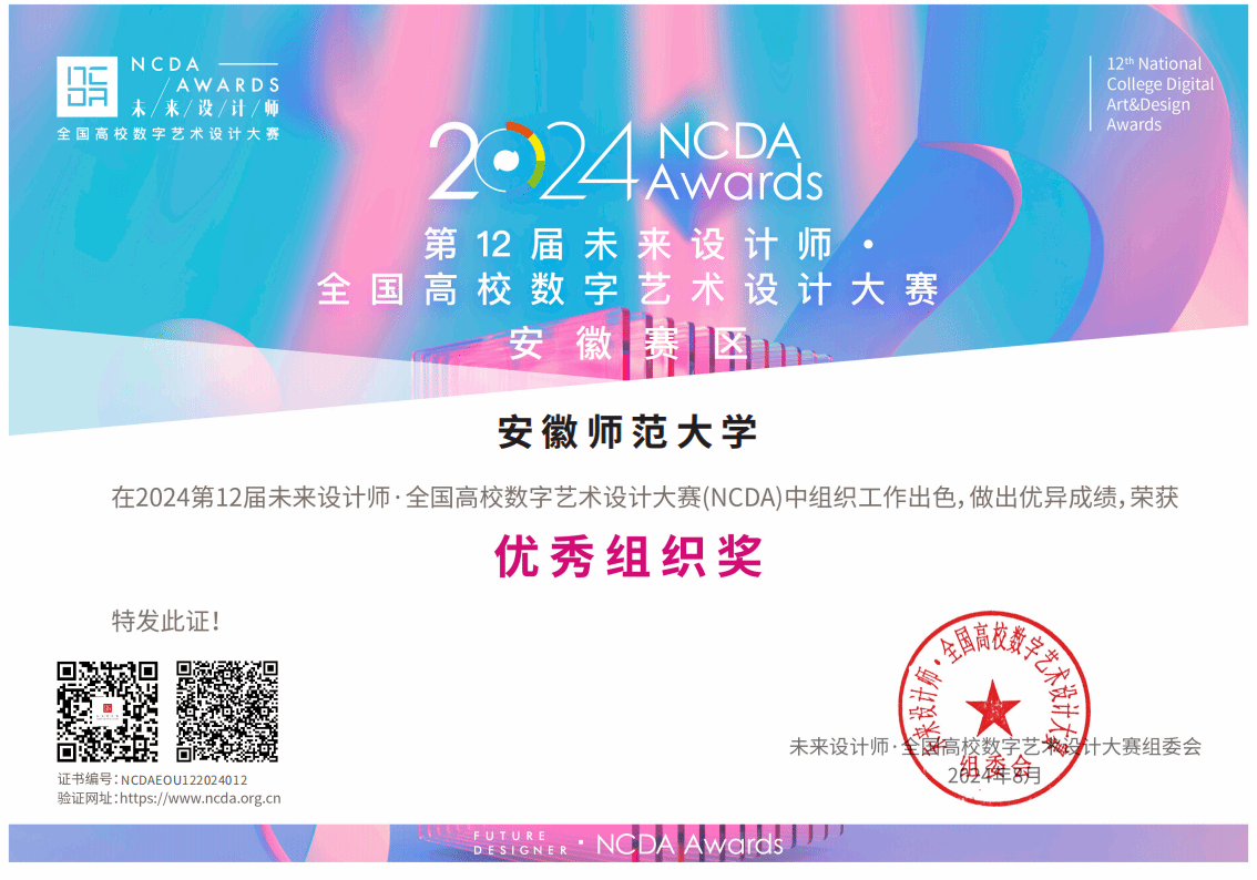 8月26日,第12届未来设计师·全国高校数字艺术设计大赛(NCDA)全国总决赛奖项公布。经严格选拔,我校bat365在线中国登录入口选送的作品,获得了系列奖项:国赛共获奖6件(一等奖2件、二等奖2件、三等奖2件);省赛共获奖26件(一等奖4件、二等奖7件、三等奖15件)。我校获得全国“优秀组织奖”和“省级优秀组织单位”等荣誉。
