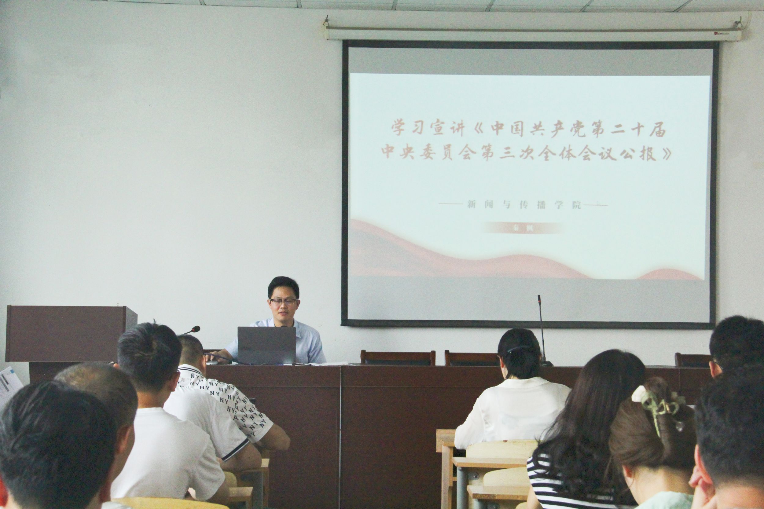 本网讯(新传党委办)9月4日下午,bat365在线中国登录入口召开教职工政治理论学习会,专题学习党的二十届三中全会和教育家精神。会议由学院党委书记张师帅主持,全体教职工参会。