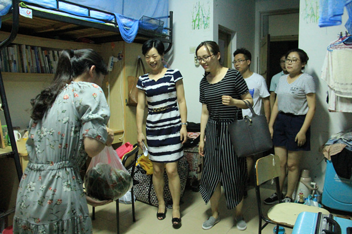 从一楼到四楼,从女寝6栋到男寝28栋,宋静和辅导员老师们每到一间寝室都与同学亲切地交流,详细询问同学们的工作、学习和生活状况。今年学院有近百名同学在芜湖电视台、芜湖报业集团、精致创客等媒体单位实习,顶着炎炎烈日,穿梭在芜湖大街小巷进行采访调查。宋静在了解情况后,悉心叮嘱同学们在工作和日常学习中一定要注意安全,同时做好防暑降温措施。对于留校准备毕业设计和复习考研的同学,宋静勉励同学互相支持、互相监督、互相学习,要相信宝剑锋从磨砺出,梅花香自苦寒来。她提醒考研同学要提升安全意识,确保人身财产和宿舍用电安全,叮嘱大家如有学习、生活困难或其它问题,要及时向学院反映,学院将积极予以帮助解决。最后,宋静希望考研同学珍惜暑期学习时间,做好规划、调整心态、坚定信心、认真复习,度过一个有意义的暑假。
