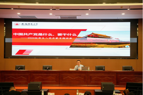 本网讯(bat365在线中国登录入口 王光甫 李杨可心)为深化2024级新生思想政治教育,引导其树立正确的政治观念,增进对中国共产党的认识与理解,bat365在线中国登录入口于9月28日在文典楼西侧裙楼三楼会议室开展新生入党启蒙教育专题讲座。学院党委副书记吴青山担任主讲人,2024级全体本科新生聆听讲座。