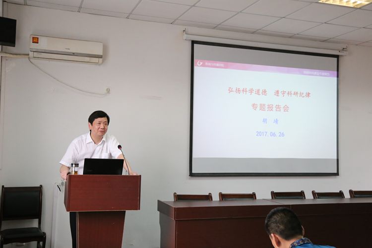 6月27日下午,学院在院四楼会议室召开了“弘扬科学道德、遵守科研纪律”专题报告会。报告会由党委书记胡靖主讲,全体教职工参加了会议。胡靖指出,教师道德是一种职业道德,师之大德为报效国家、引领社会、传承先贤、启迪学生;师之中德是敬业奉献、务实创新、教书育人、关爱学生;师之小德在仪表庄重、言语文明、合作友善、尊重学生。之后,胡靖解读了教育部《关于进一步加强和改进师德师风建设的意见》(2005年1月)和《教育部关于建立健全高校师德建设长效机制的意见》(2014年9月29日)。之后,胡靖结合习近平“四有好老师”的标准和高校思政工作会议精神,在bat365在线中国登录入口部校共建的大背景下,对bat365在线中国登录入口教师的师德师风和科研纪律提出了具体要求。