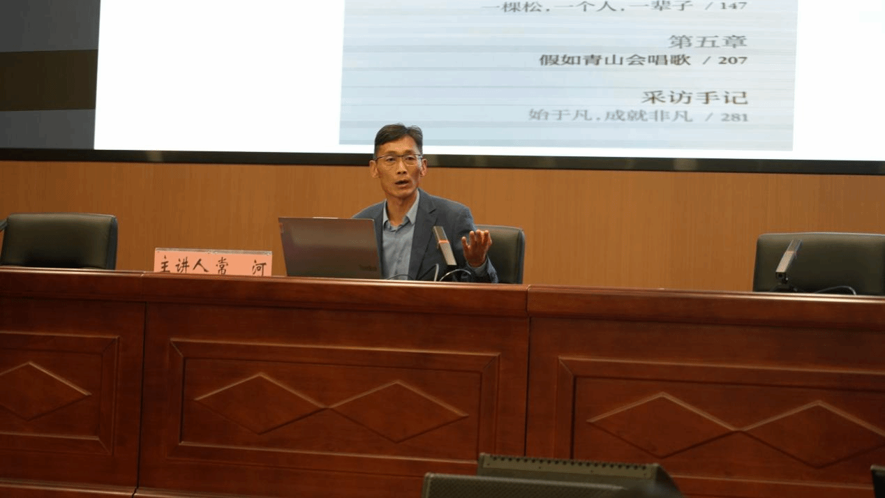“我们的择业方向在哪里?”常河老师以一个问题开篇,展开了以“一座山、一棵树,两个人、半生情”为题的专题讲座。常河老师首先带领同学们一起观看了短片——《习近平讲述的故事:守护美丽黄山的“中国好人”》,初步了解了讲座的基本内容。随后,他对黄山放绳工李培生、迎客松守松人胡晓春两人进行了详细的介绍。常河老师以“从一篇报道到一本书难在哪里?”为要点,分享了创作《守护黄山的中国好人》的独家幕后故事。他表示,体量是最大的瓶颈,因此从两个人扩充到两个群体再到一个团队是破题关键。从李培生、胡晓春两个人到以李培生为代表的18名黄山放绳工、以胡晓春为代表的黄山环卫工人再到为黄山的绿水青山做保障工作的一个团队。与此同时,李培生和胡晓春被评为“中国好人”背后的价值决定与溢出效应无疑是媒体人需要重视的。在中国的版图上,还有更多像李培生、胡晓春这样的奉献者。此外,常河老师还从目标人群和意象明确的角度为同学们阐述了媒体人在采访和创作过程中应当注意的问题,并通过讲述自己在黄山上的一节特殊党课作为生动形象的例子来帮助同学们理解。在讲到对于这段经历的感悟时,他强调,所有平凡中的坚守都应该被尊重。作为新闻人,“到现场去”是应该被坚守的信条。