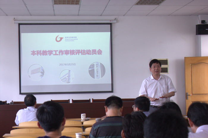 5月25日,bat365在线中国登录入口在院四楼会议室召开教职工大会暨本科生教学工作审核评估动员会。院领导班子、全院教职工参加了会议,会议由执行院长杨柏岭主持。