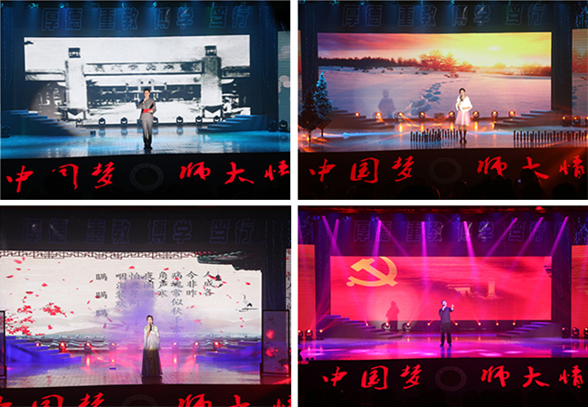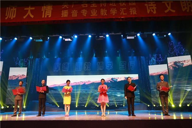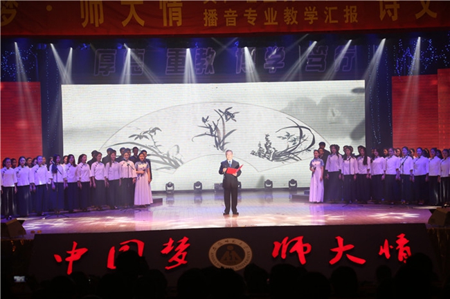 本次诗文朗诵会是朗诵会共分为“师大岁月”、“校友情怀”和“青春梦想”等三个篇章。朗诵会上,演出嘉宾和广大师生同台演出,倾情演绎大师和校友们的作品,他们中有代行我校校长之权的国学大师刘文典、两任我校校长的留美教育家杨亮功,有曾受命参与我校筹建的著名教育家陶行知,有在我校工作或学习过的郁达夫、苏雪林、汪静之、刘奇葆等杰出校友,充分展现了学校悠久的办学历史、优良的传统与作风,展现了校友们浓浓的爱校情怀,同时也展现了我校bat365在线中国登录入口播音与主持艺术专业师生的教学水平和专业风采。