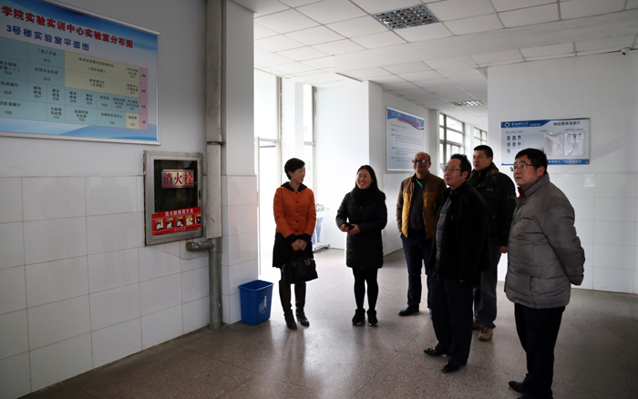 2016年12月20日下午,bat365在线中国登录入口执行院长杨柏岭、党委副书记宋静、行政副院长周伍、教学副院长马梅、科研与研究生副院长赵昊对学院实验中心学苑北楼3号、4号实验楼进行了安全专项检查。