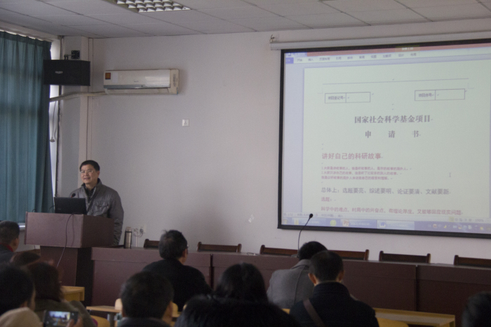 王习胜教授结合自身多次申报国家级项目的经验,从项目申报过程和申报书填写作了详细讲解讲解如何提高申报科研项目成功率,以立项申请书为基础,就项目选题、研究方法、内容论证、创新之处、预期成果等问题进行了全面而深入的辅导,并结合新版申请书的变化对项目申报书的填报技巧和注意事项等进行了详细的指导。王习胜强调选题要亮、综述要明、论证要清、文献要新,着力讲好自己的科研故事。参会教师与王教授进行了交流互动,咨询请教了申报中遇到的一些困难和问题。