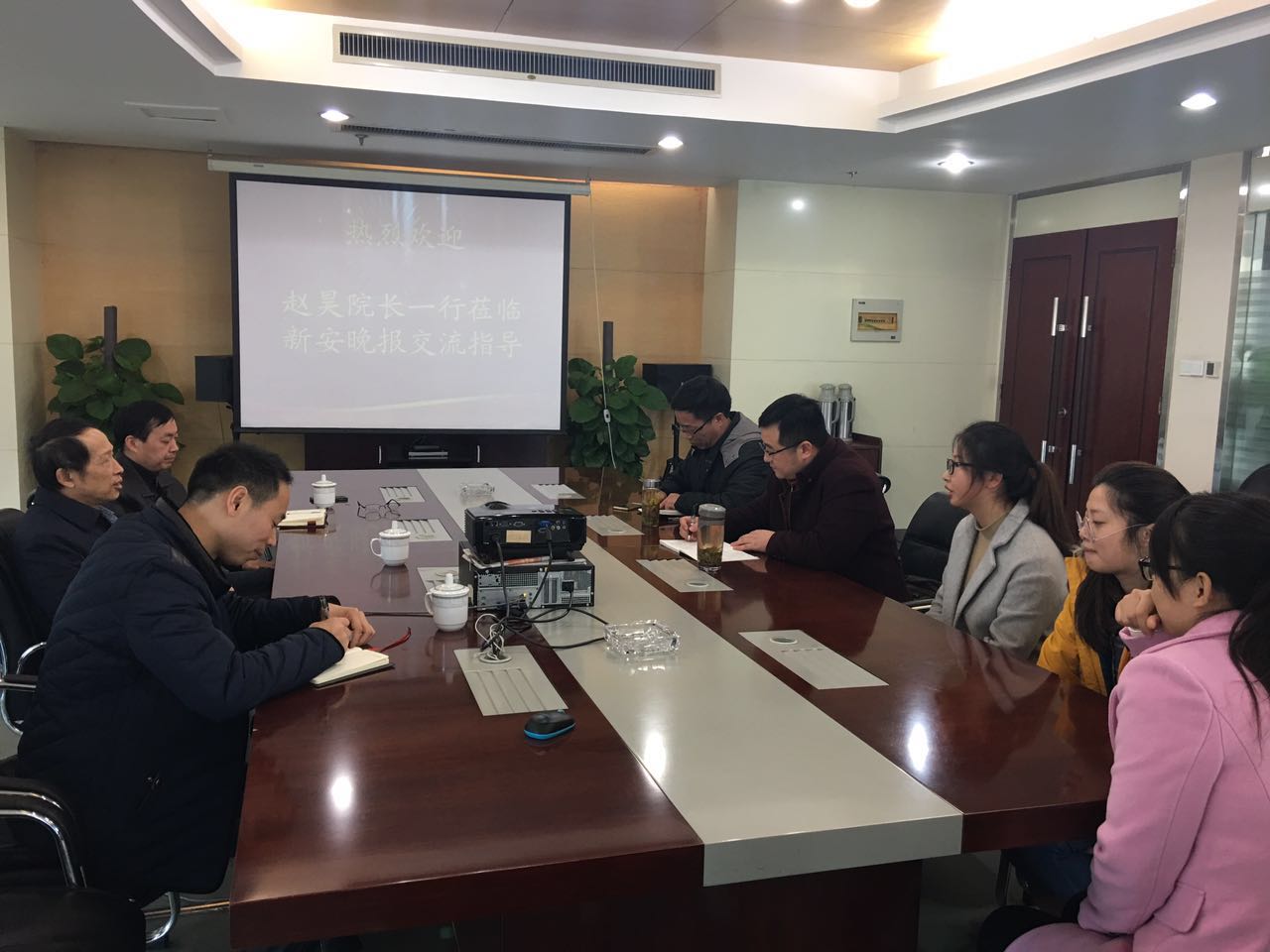 赵昊副院长一行先后来到合肥报业集团和新安晚报社,分别听取了两家媒体的领导和指导老师对15级专硕同学近三个月实习情况介绍,并就如何进一步培养好优秀新闻与传播人才问题征求了业界专家的意见和建议。《合肥晚报》常务副总编辑杨杰结合今年新上线的“ZAKER合肥”运作情况,认为媒介格局和新闻生产的方式都在发生深刻的变化,新媒介环境对新闻从业人员提出了更高的要求,高校新闻传播教育应着力全媒体人才培养,加强实践能力培养,重视新闻采写标准传授和表现技能训练,让学生进入职场能有更好的专业表现。《新安晚报》副总编辑李今枚在充分肯定bat365在线中国登录入口本科与专硕教学和学生实习表现后,建议要强化案例教学,有选择地跟进特定时期典型的新闻事件,“解剖麻雀”中增强学生的实践能力,并提高思辨能力,为论文选题奠定基础。《新安晚报》副总编辑曹海峰对当下传播生态充满忧思,认为媒介格局大变革时期传统媒体面临挑战,学界是机遇,有许多问题值得关注与研究。新闻传播教学中要讲理想、讲情怀,但也要讲业态真相,不能把媒体工作过于理想化、艺术化。赵昊副院长和陈新平老师分别回应了业界专家的建议,并对专家们热诚关心、支持学院的新闻教育表示感谢。
