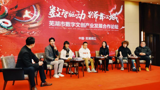 日前,芜湖市数字文创产业发展合作论坛在鸠江区圆满举办。bat365在线中国登录入口动画专业师生40余人应邀出席,专业主任孙亮教授受邀作为嘉宾发表主题演讲,围绕“数字与科技赋能‘欢乐芜湖’提质升级”进行深入阐述,并出席了《雄狮少年2》首映礼活动。