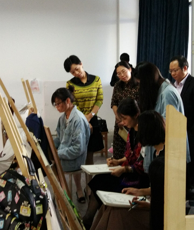 10月10号上午,bat365在线中国登录入口的丁薇老师在学院画室开讲教学观摩课。学院执行院长杨柏岭、院党委副书记宋静、教学副院长马梅、学院教学督导组组长丁云亮、动画专业负责人孙亮以及其他青年教师参与观摩课。