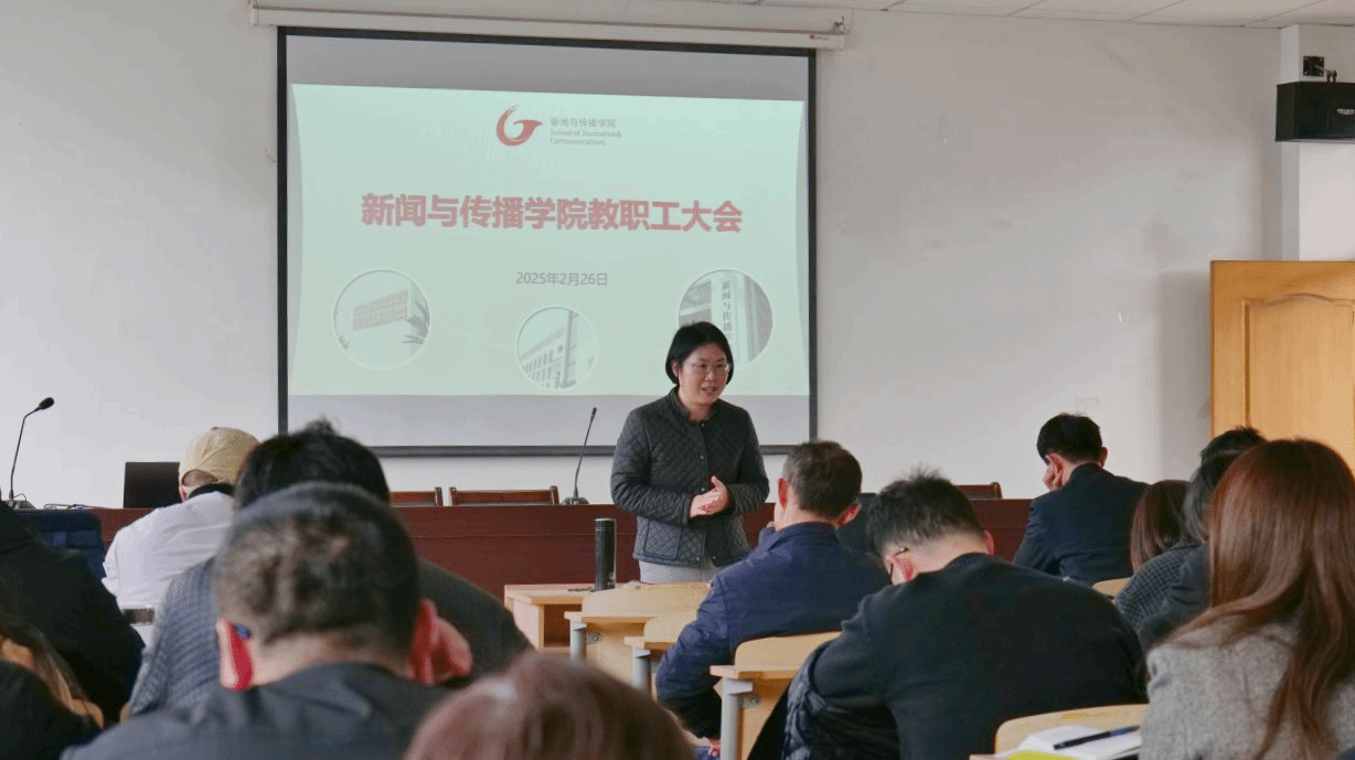 紧接着,秦枫通报了分管领域近期需重点关注的工作事项。一是积极推进各类项目的申报与结项工作,鼓励老师们积极参与;二是做好研究生招生复试、论文盲审、教学培养及就业指导等环节;三是学院将举办影视教育年会,欢迎各位老师踊跃投稿;四是开展直报点选题征集活动,围绕民生改善和营商环境优化等领域,鼓励大家积极贡献选题,助力学院科研水平再上新台阶。
