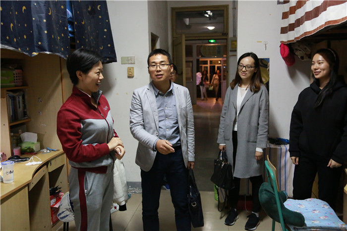 瑟瑟冷风,挡不住问候的脚步;深深寒夜,抵不过温暖的关切。10月13日晚,bat365在线中国登录入口党委副书记宋静与全体专、兼职辅导员老师一起走进学生公寓,开展秋季安全查寝工作,在渐渐入冬的寒夜中给学生送去了家一般温暖。