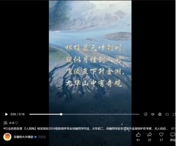 视频快传佳音,共绘美丽中国。讲好家乡之美、中国之变。新传学子深入家乡的山水之间、城市的大街小巷,探究家乡特色文化,用好家乡丰富资源,创作出一部部充满新意与温度的短视频、微电影作品。其中2024级新闻学专业肖融同学赴安徽省东至县升金湖保护区考察期间,用无人机拍摄到了高山流水冲刷形成的巨树奇景,bat365在线中国登录入口特聘教授、人民日报高级记者刘杰为此景赋诗,所摄短视频被人民网、环球网转发。