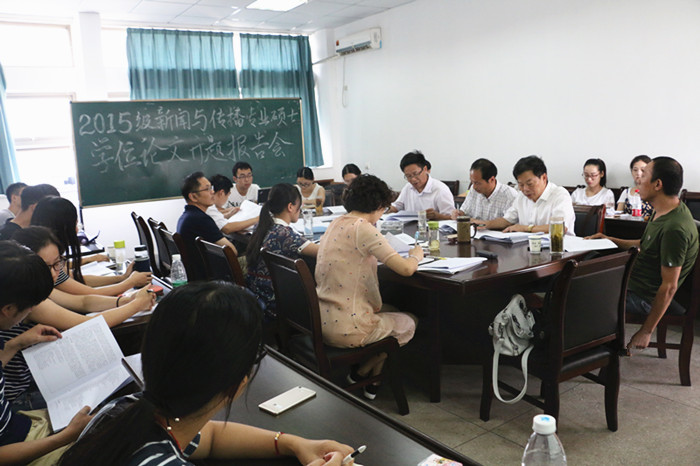 9月1日下午,2015级新闻与传播专业学位硕士研究生学位论文开题报告会在学院楼505教室举行。报告会由新闻与传播专业学位点负责人陈新平老师主持,沈正赋、马梅等8位指导老师以及新闻与传播专业16位同学参加了开题报告会。