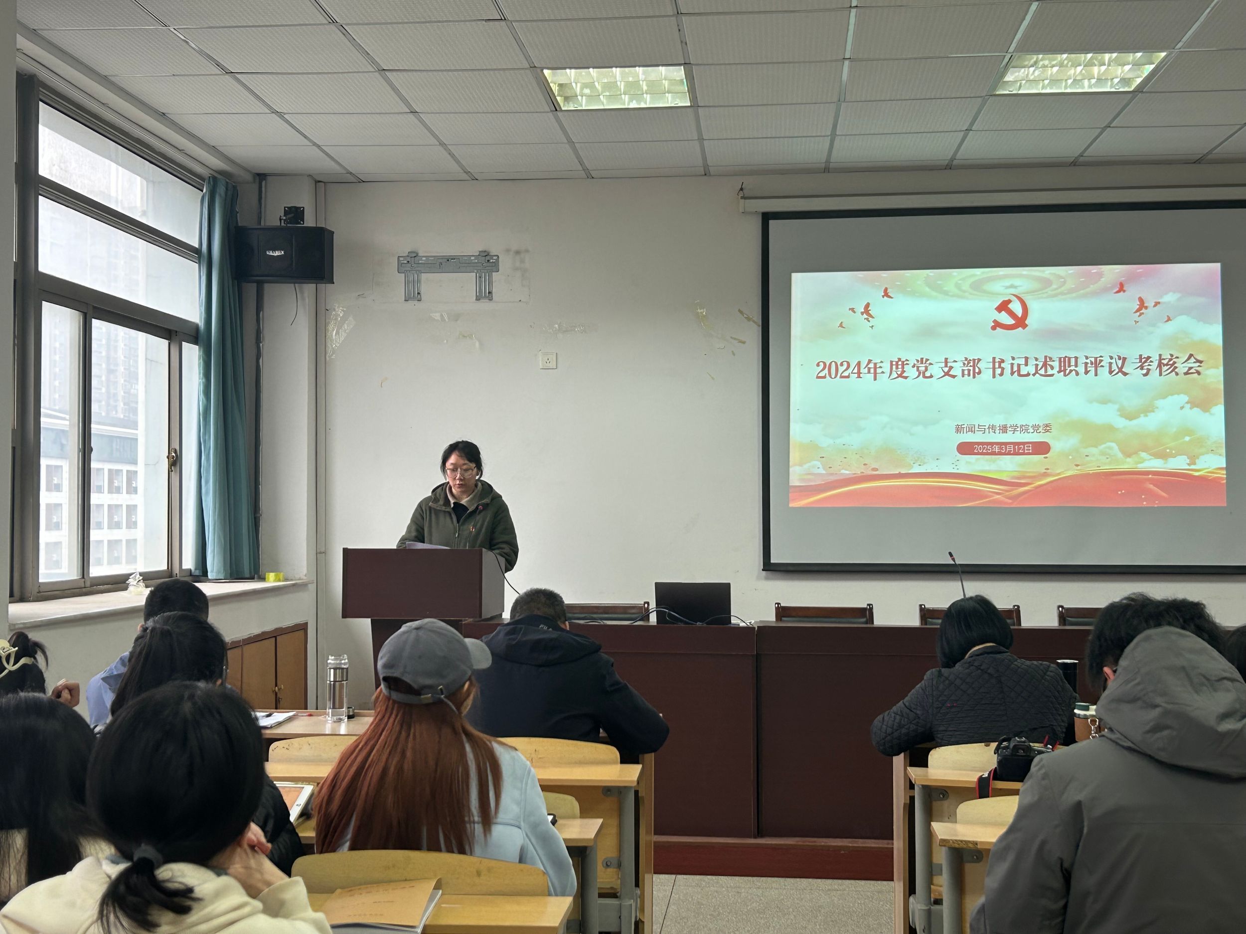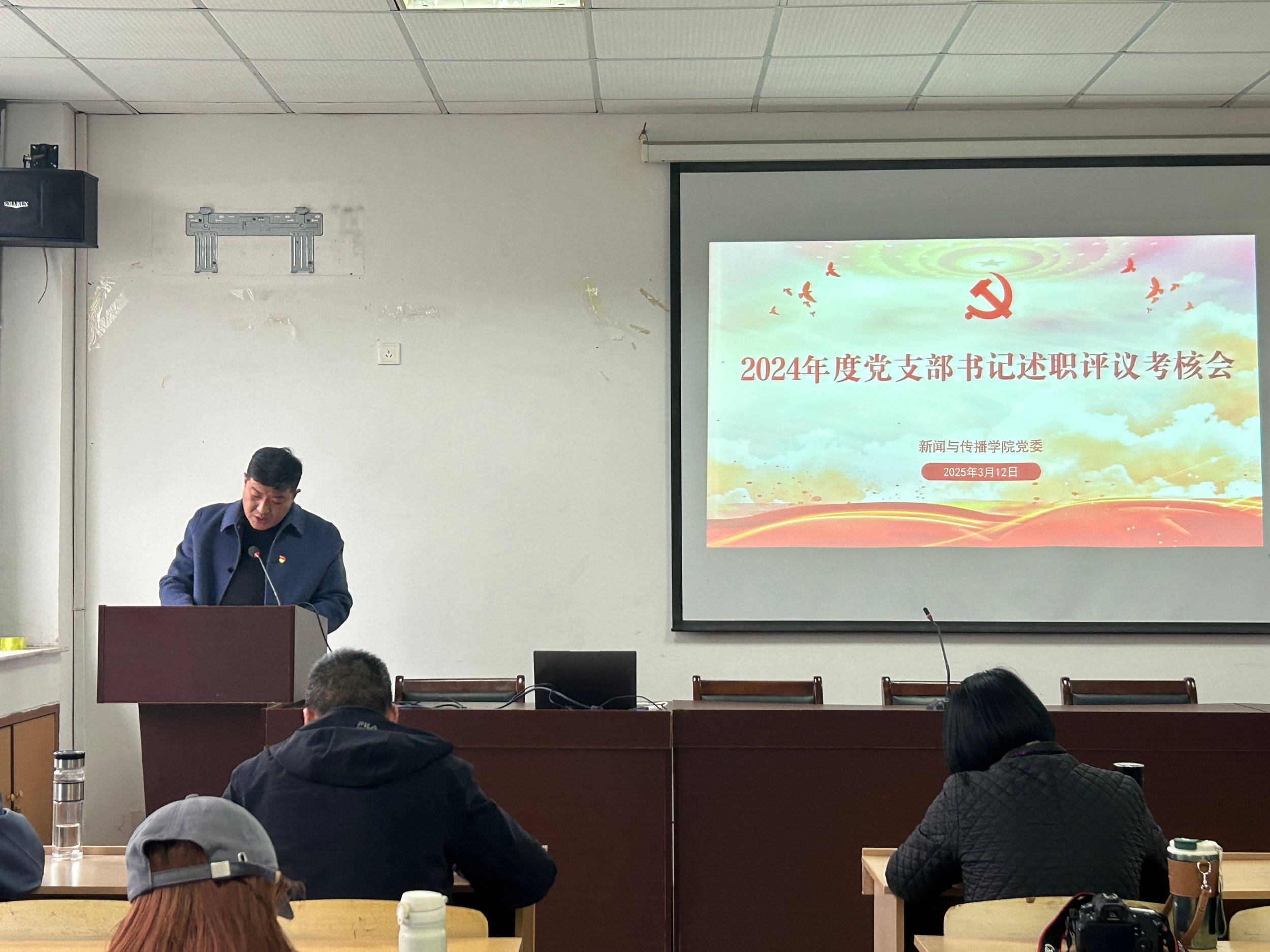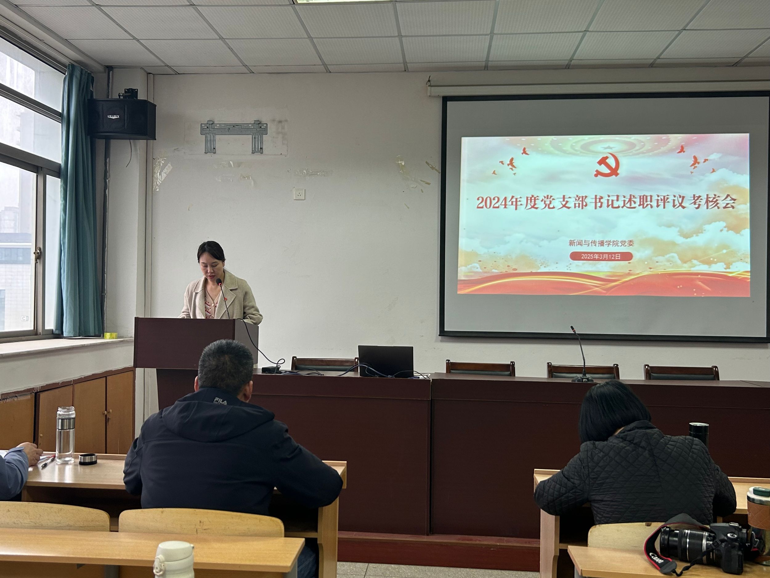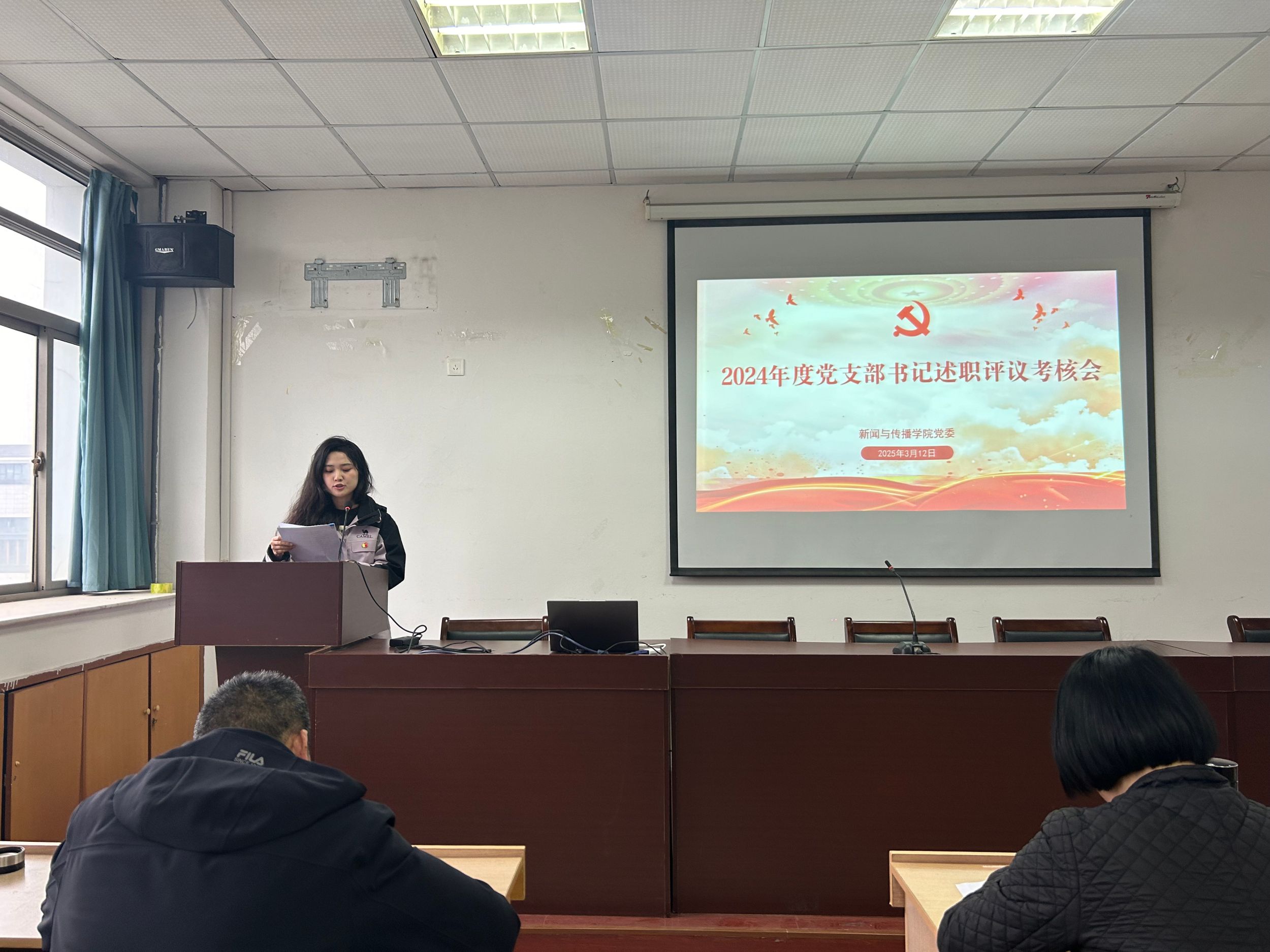 本网讯(新传党委办)3月12日下午,bat365在线中国登录入口在学院会议室召开了2024年度党支部书记述职评议考核会。校党委统战部副部长李叶青到会指导,学院党委委员、专业主任、党员代表以及各党支部书记等参加了会议。会议由学院党委书记张师帅主持。
