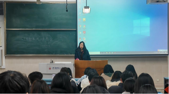 图为辅导员汪笑笑老师发言
