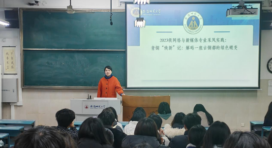 在采风安排方面,林燕主任强调,同学们要在出发前进行充足的准备工作,通过铜陵市文旅局、地方媒体、地方志等渠道,梳理城市核心资源。同时围绕“传统工业城市转型”“生态与人文共生”等选题制定采风计划,预约采访对象。采风中执行多媒介素材采集,融合无人机航拍、Vlog纪实、交互H5等形式,促使内容形式多样化,并通过微信公众号“如沁有话说”每日发布作品。采风活动结束后,整合素材,创作新媒体推文、短视频、数据新闻等作品,突出铜陵“历史与现代交织”的独特气质。林燕主任还向同学们展示了往届采风优秀作品,鼓励同学们向优秀学长学姐学习,努力创作出高质量的作品。