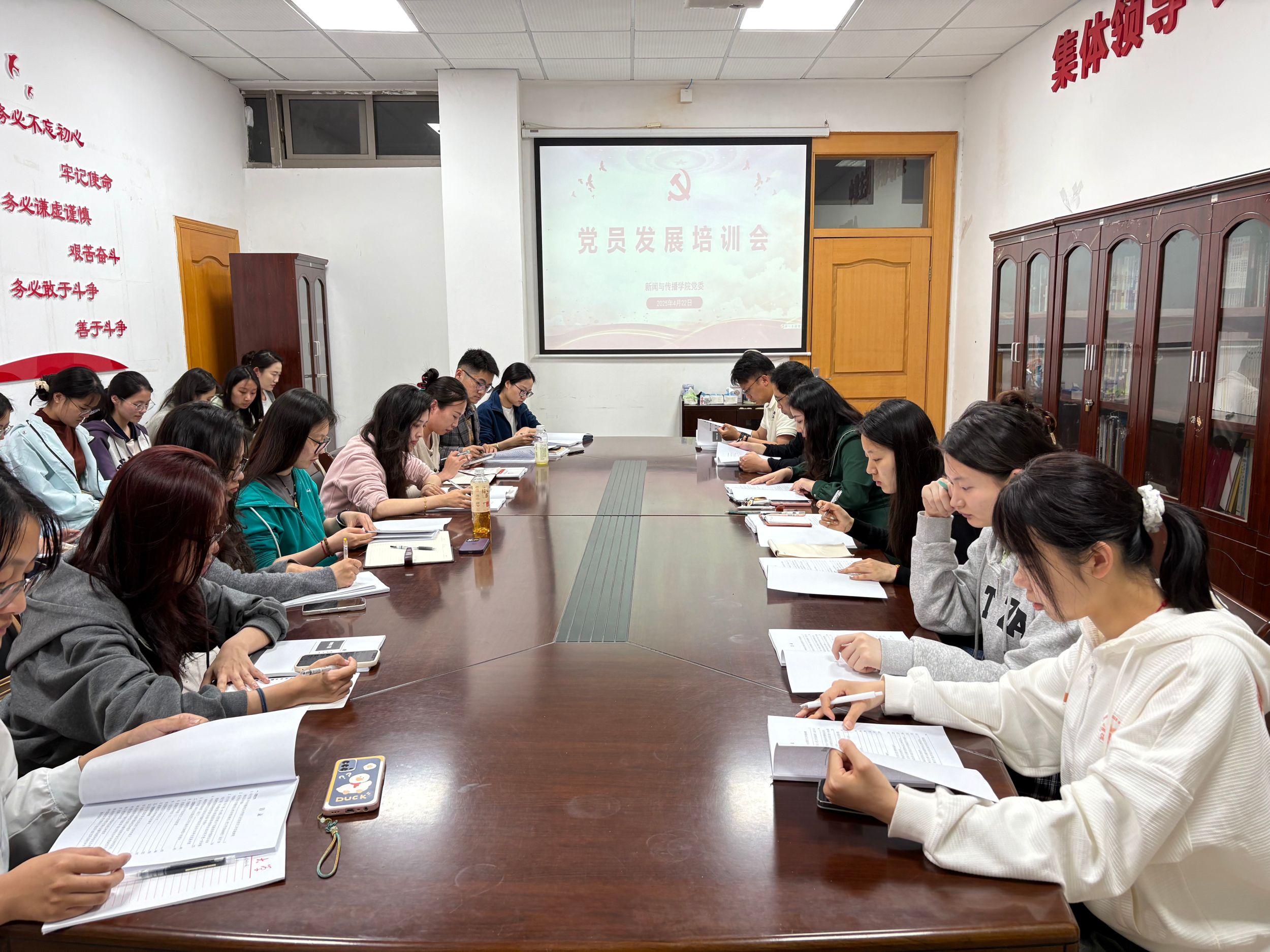 本网讯(新传党委)4月22日晚上,bat365在线中国登录入口党委召开2025年上半年党员发展工作培训会,学生党支部书记、支委、相关党员、部分班级团支部书记等参会,会议由学院党委秘书张雁主持。