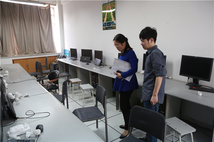 安全检查过程中,马梅认真检查了每一间实验室,仔细询问各实验室的使用情况、实验设备的完善与否以及运行状况。在了解到实验室目前存在的问题,马梅提出了相应的整改意见,要求实验楼的每一处都运用在实验教学上,做到物尽其用。在学生创作工作室,马梅查看了教学设施的使用情况和桌椅等物品的质量情况,并与同行的老师讨论了机房布置及计算机摆放的合理性。将之与其他高校对比,马梅结合部分高校计算机教室的设计经验,提出将计算机布置成“圆形”或“半圆形”,以方便学生们之间互相讨论研究。实验室要努力营造一种自由开放的学习氛围,让学生在上课过程中能够更好地发挥自我教育、自我管理的作用。来到播音教室,马梅检查了话筒、电线、插线板等电器的使用程度,力求排查安全隐患,突出强调要注意消防安全。