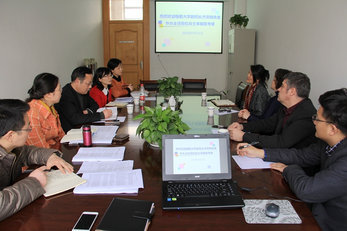 座谈会上,双方均表达了合作办学的意向。杨柏岭就合作办学的机制、学术交流方式等话题,与热诺姆等人进行了深入的探讨与交流。劳拉女生进一步介绍了格勒大学国际合作办学的规模、方式等情况。马梅就课程设置、学分互换、语言学习、毕业证书认可等问题与法方进行了沟通。宋静就学生留学的安全、住宿、生活、费用等问题与法方进行了互动与交流。