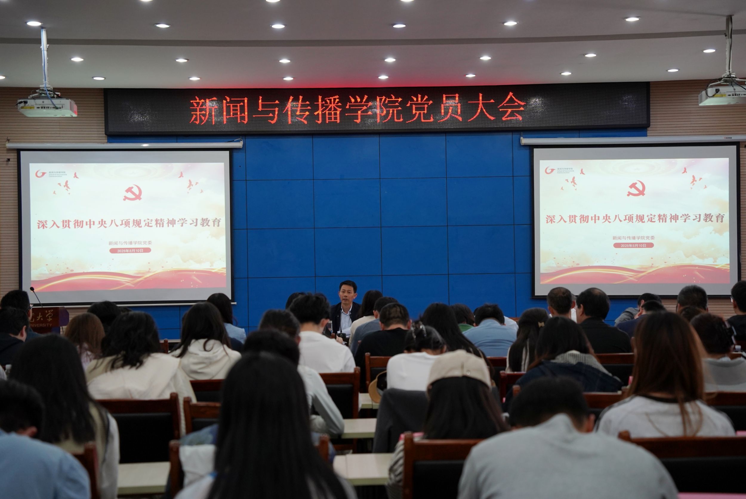 本网讯(新传党委办)5月10日上午,bat365在线中国登录入口党委在花津校区圆形报告厅二楼会议厅召开全院党员大会,进一步推进深入贯彻中央八项规定精神学习教育。学院全体党员参会,会议由学院党委书记张师帅主持。