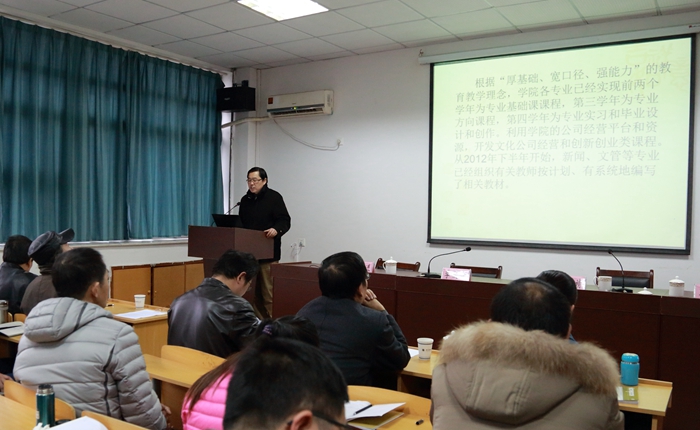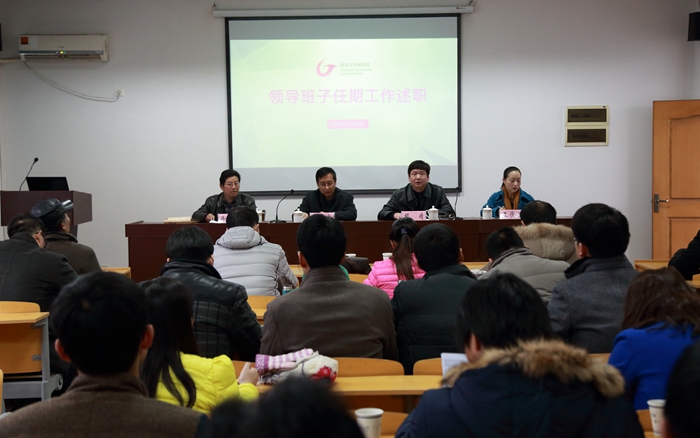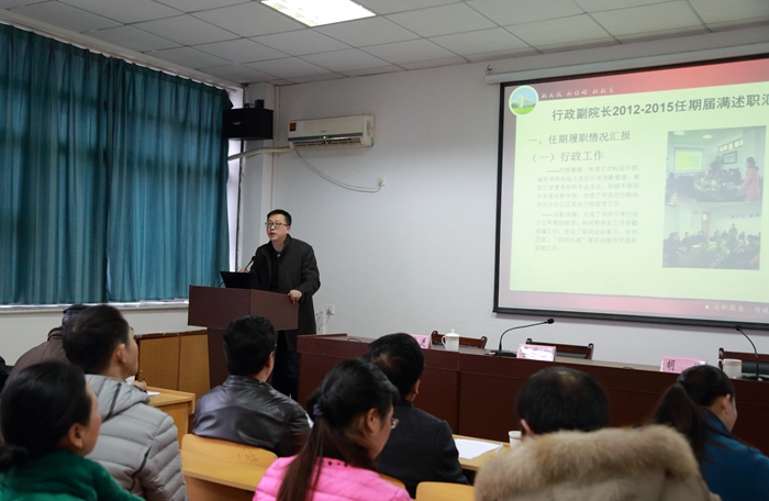 随后,院党委书记胡靖代表本届班子从总体目标、分类目标、年度工作3个方面向大会作了述职报告。报告指出,过去的5年学院在相继被确定为学校应用型专业改革发展的“试验田”和部校共建新闻学院的先行试点单位,迎来了快速发展的机遇。学院朝着高水平、有特色、省内一流,在全国有一定影响力的应用型新闻学院的目标,基本确定了发展架构、初步确定了培养模式、师资结构更加合理、条件保障更加有力、学院影响力显著提升。胡靖还就个人任期工作做了汇报。