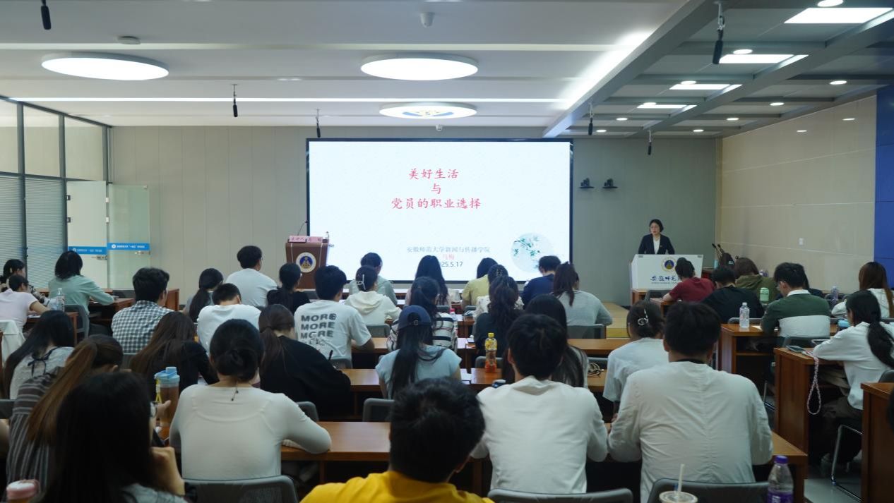 随后,马梅以融媒体作品案例和优秀党员事迹为引,为学员们带来题为“美好生活与党员的职业选择”的专题党课。她强调,新传专业的学生党员在面对职业选择时应“既要仰望星空,更需脚踏实地”,将专业特长与党员责任相结合,在新闻报道中传递正能量,记录时代发展,以实际行动践行习近平总书记对新闻工作者“四向四做”的寄语。