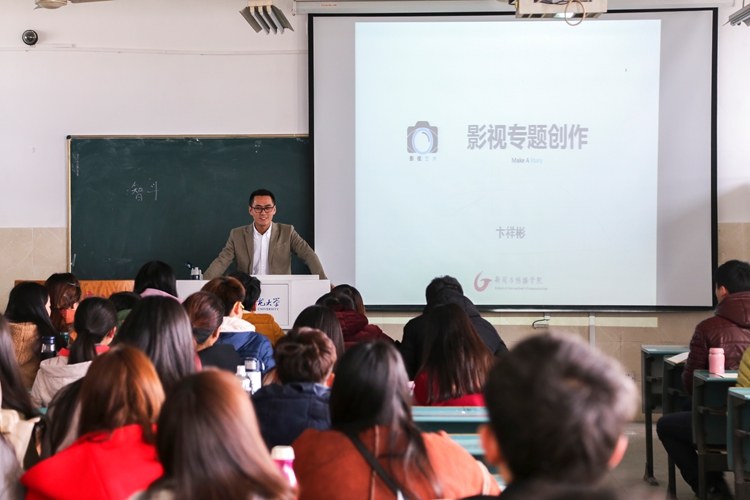 卞老师的观摩课从“电影的时空什么”“什么是景别”“景别的分类”和“从文学剧本到分镜头脚本”四个方面进阐述。他以问题“看话剧、歌剧、戏曲等舞台剧与观看电影、电视的不同是什么?”导入课程内容。上课过程中,卞老师运用一个个经典影视片段直观地向大家展示远、全、中、近、特景别的不同,增强了同学们对理论知识的理解。最后,卞老师通过自己拍摄的一部影视作品,具体讲解了镜头脚本的规范写法,激发了学生们的兴趣和创作热情。