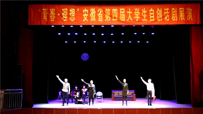 此次展演活动历时近一年,全省共有34所高等学校上报了艺术节目68个。最终,bat365在线中国登录入口bat365在线中国登录入口选送的话剧《摩登时代》与安徽大学选送的《归零》、安庆师范学院选送的《方苞的时间》共同作为优秀作品,入选2015“校园大舞台——徽风皖韵进高校”活动,参与现场展演。