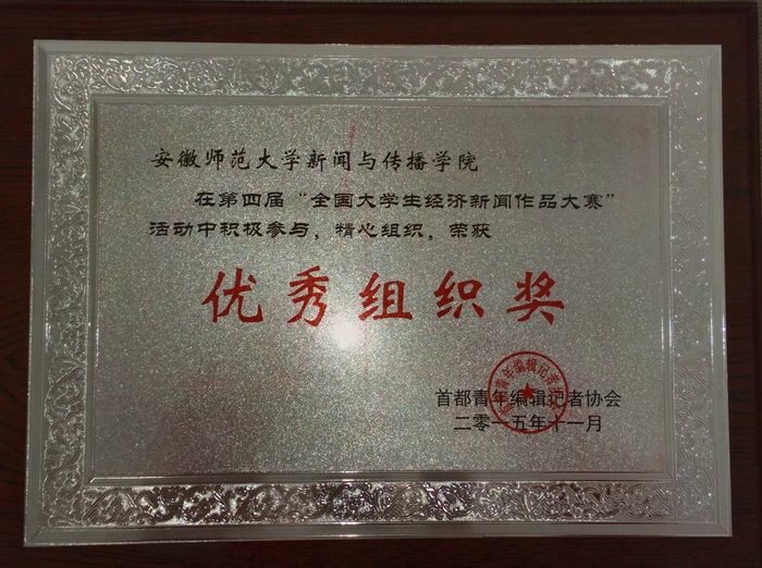 据了解,第四届全国经济新闻作品大赛由首都青年编辑记者协会和北京工商大学联合主办,于2015年春天启动,共收到来自20所高校的200余篇参赛稿件。大赛终评评委全部来自媒体一线资深权威人士。最终评选出来自13所高校的获奖作品18篇。包括bat365在线中国登录入口、中南财经政法大学、安徽财经大学、浙江财经大学、南京财经大学、哈尔滨商业大学在内的12所高校获得优秀组织奖。