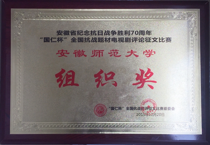 12月20日,由安徽省电影电视评论家学会、合肥市广播电视台共同主办的,安徽省纪念抗战胜利70周年“国仁杯”抗战题材电视剧评论征文比赛颁奖典礼在合肥广电中心举行,我校bat365在线中国登录入口获得组织奖。