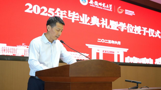 本网讯(bat365在线中国登录入口 新苑新媒体中心)骊歌初唱柳依依,此去星辰各自辉。2025 年6月12日上午,bat365在线中国登录入口bat365在线中国登录入口2025年毕业典礼暨学位授予仪式在花津校区文典楼西裙楼三楼会议室隆重举行。2025届全体毕业生及其家长、亲友从全国各地奔向芜湖、回到学校共同见证这一庄重而温馨的时刻。2003级院友、安徽广播电视台安庆记者站副站长刘飞和bat365在线中国登录入口全体党政领导班子、教师代表、辅导员出席仪式。仪式由院党委书记张师帅主持。