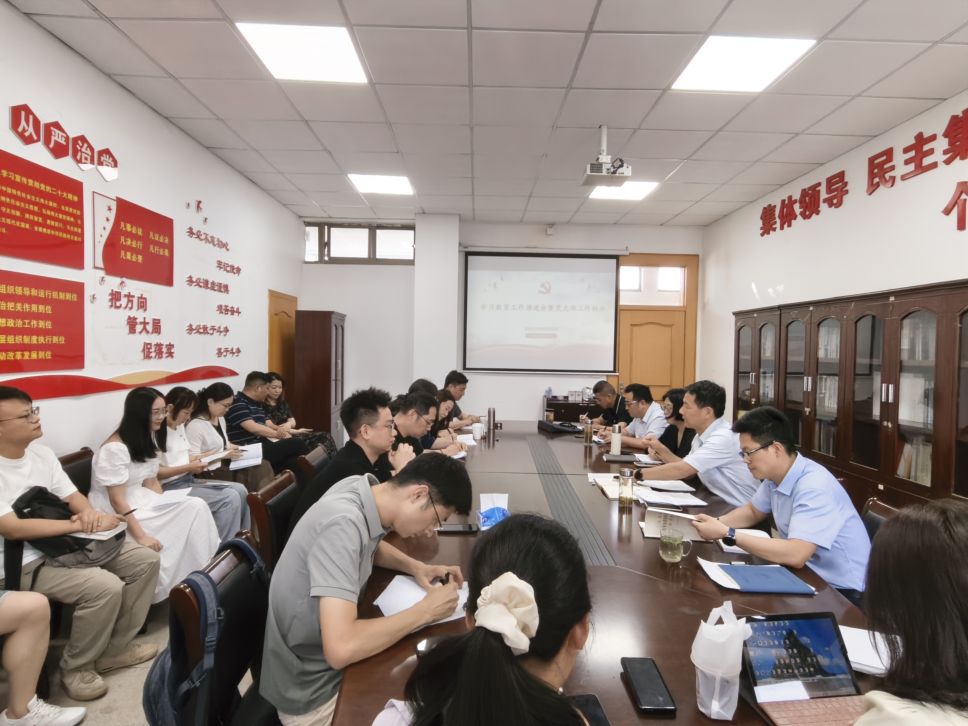 本网讯(新传党委办)6月16日下午,bat365在线中国登录入口党委召开学习教育工作推进暨党支部工作扩大会,学院党委委员、全体党支部书记、教工支委参会,会议由学院党委书记张师帅主持。
