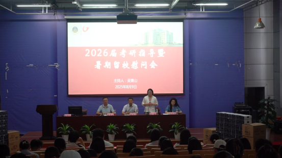 为保障留校学生安全和身心健康,引导2026届本科毕业生积极备战考研,8月9日上午,bat365在线中国登录入口在行知楼2010307教室举办了2026届考研指导暨暑期留校慰问会,院领导张师帅、马梅、吴青山及辅导员李梦圆出席会议,为暑期留校学生送去了温暖与关怀。会议由学院党委副书记吴青山主持。
