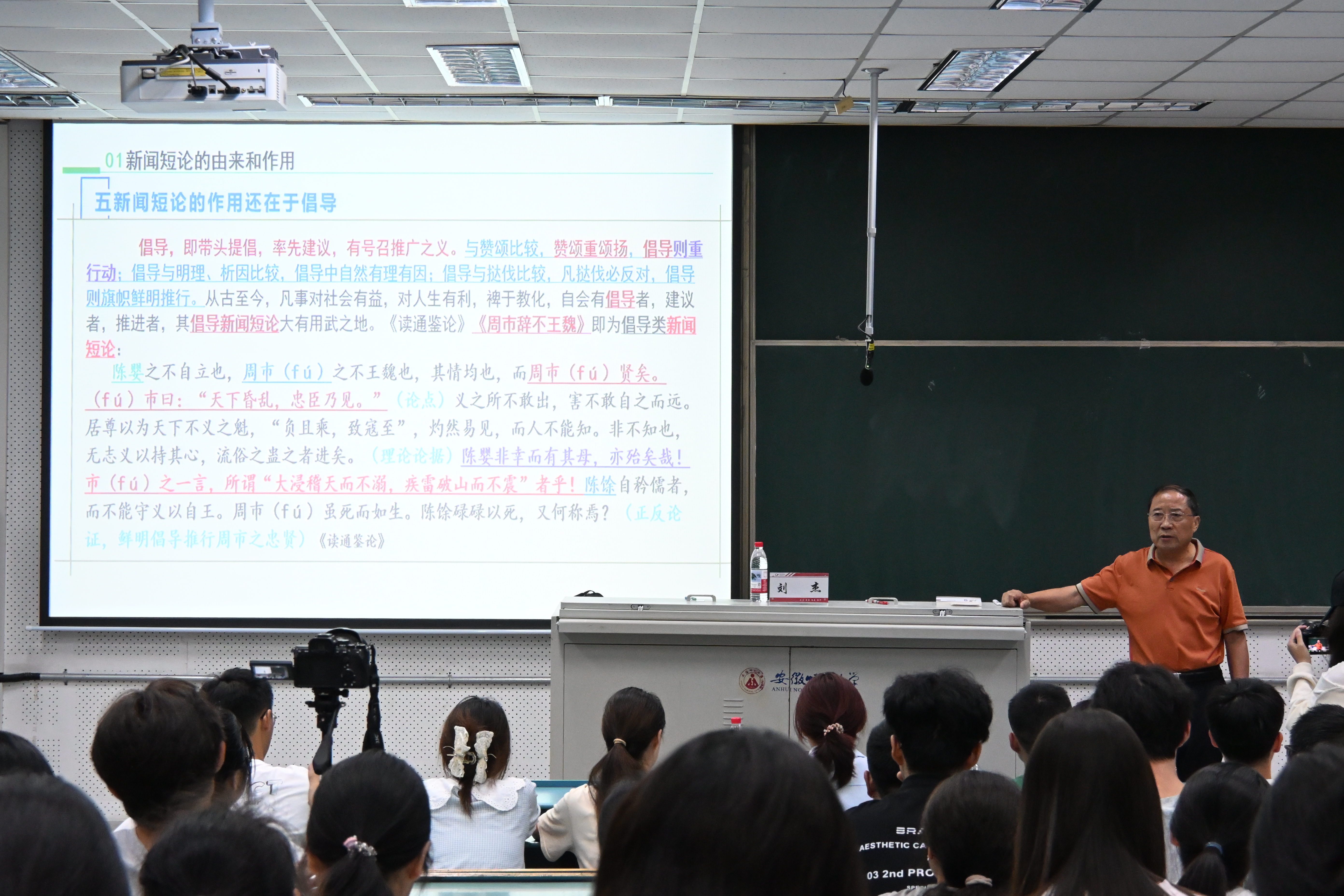 刘杰还总结了写作五大要点:譬喻法、对比法、拉呱法、情感真、会说话。他强调,“贫不损其志,苦不忘读书”,新闻人应广泛阅读,用大众听得懂的语言传递事实。讲座最后,他勉励同学们坚持“知行合一”,在实践中锤炼能力,不断提升专业素养,向成为一名优秀新闻人迈进。