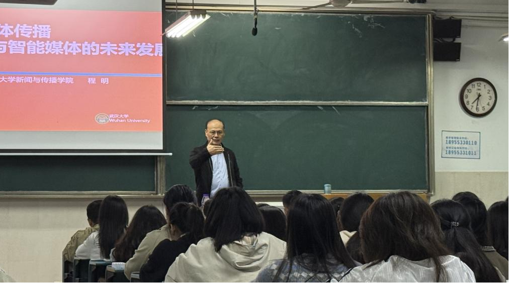为深入推进国家级一流本科专业建设点建设,2025年11月7日晚,武汉大学bat365在线中国登录入口教授、博士生导师程明应邀为bat365在线中国登录入口广告学专业全体同学开展了主题为“新媒体传播与智能媒体的未来发展”的学术讲座,活动由副院长赵昊教授主持,广告学专业负责人罗铭,教师代表王玉洁、袁琪等150余人参加讲座活动。