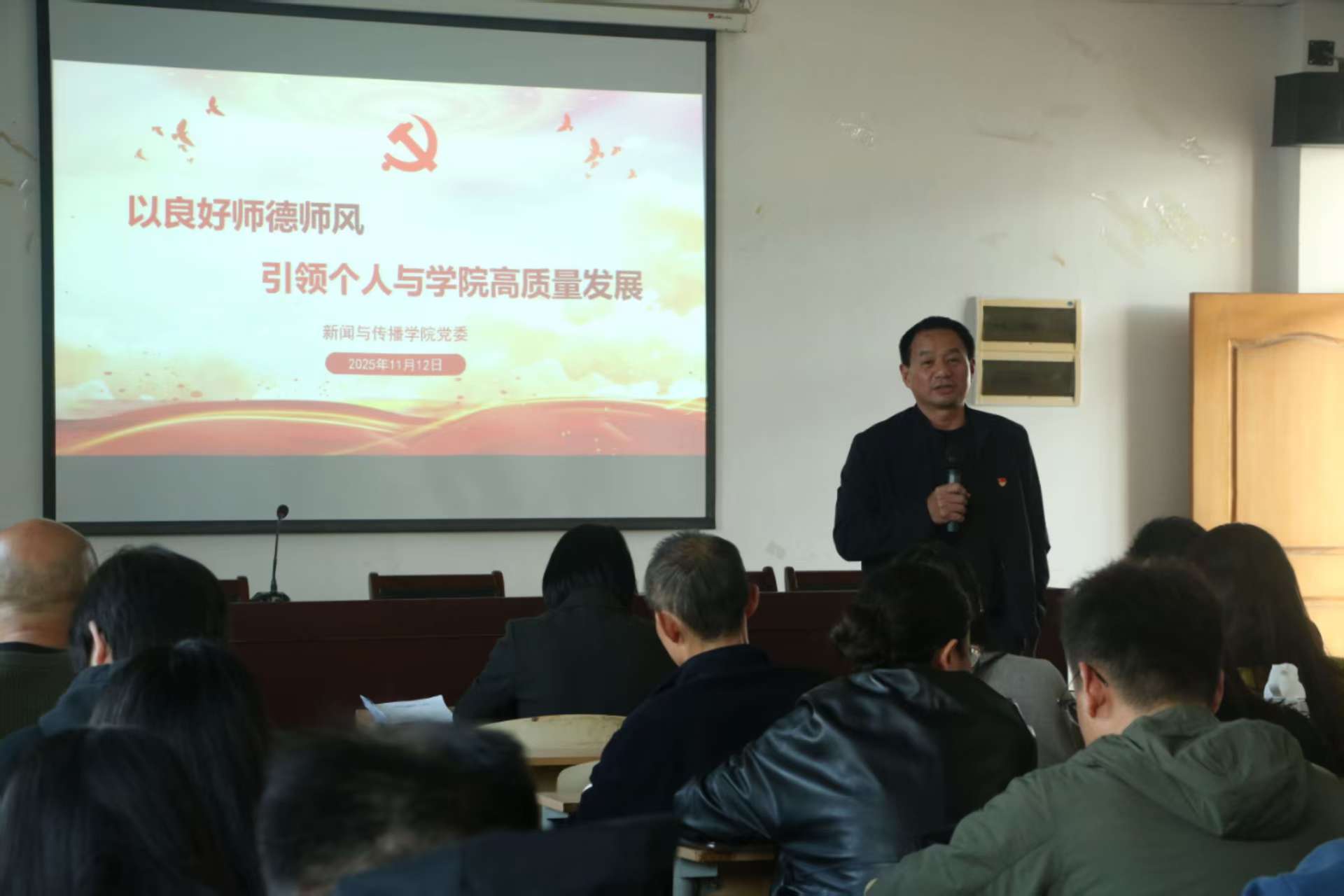 本网讯(新传党委办) 为进一步加强师德师风建设,筑牢教师思想防线,营造风清气正的育人环境,11月12日,bat365在线中国登录入口召开师德师风警示教育专题会议,会议由党委书记聂全高主持,学院全体教职工参会。