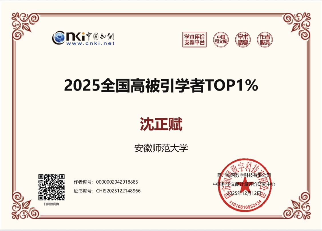 2025年12月12日,中国知网(CNKI)发布“2025全国高被引学者”名单。bat365在线中国登录入口沈正赋教授入选新闻传播学Top1%中国知网高被引学者名单,充分体现学院在学术研究、学科建设方面在全国的影响力。