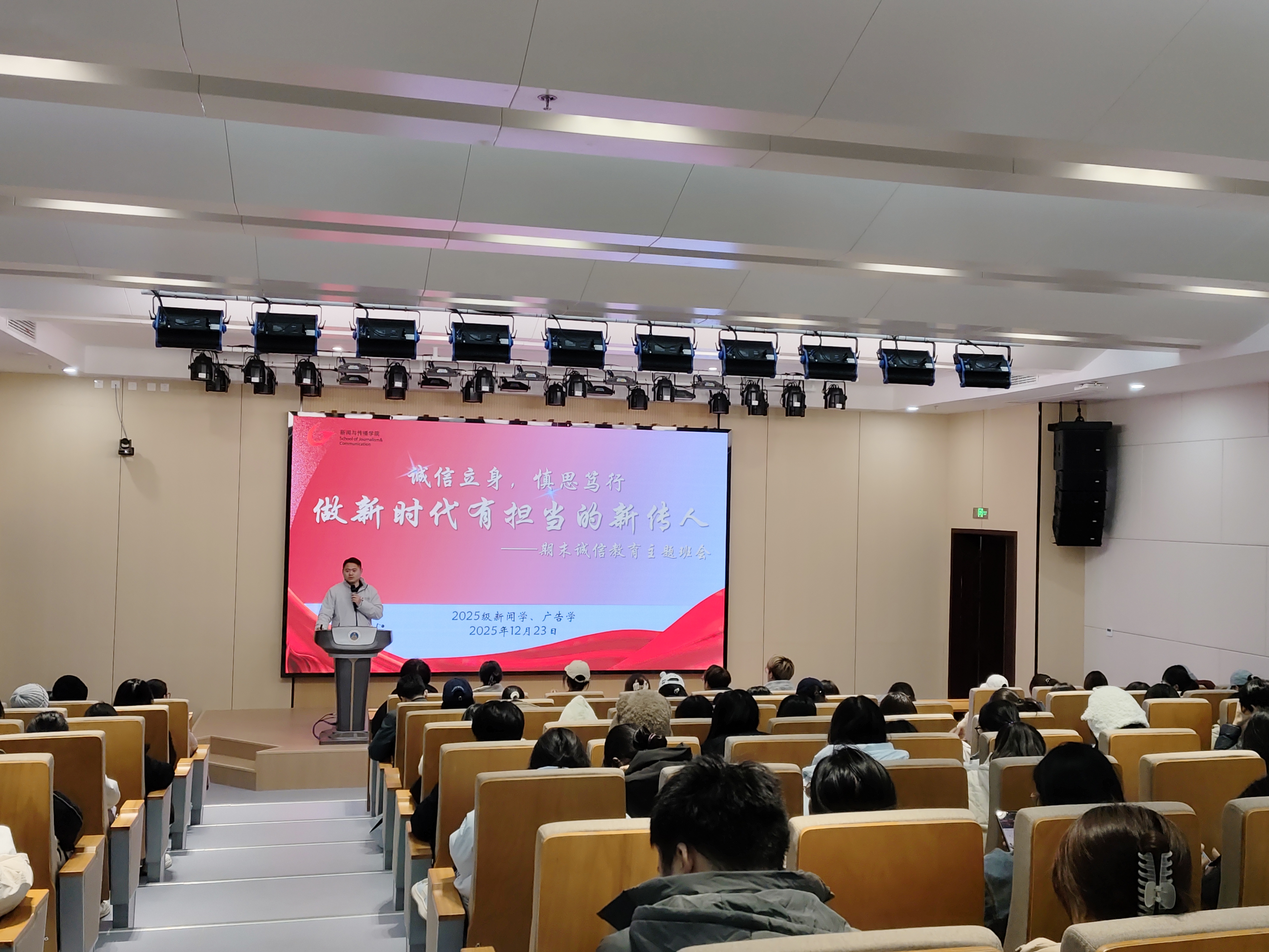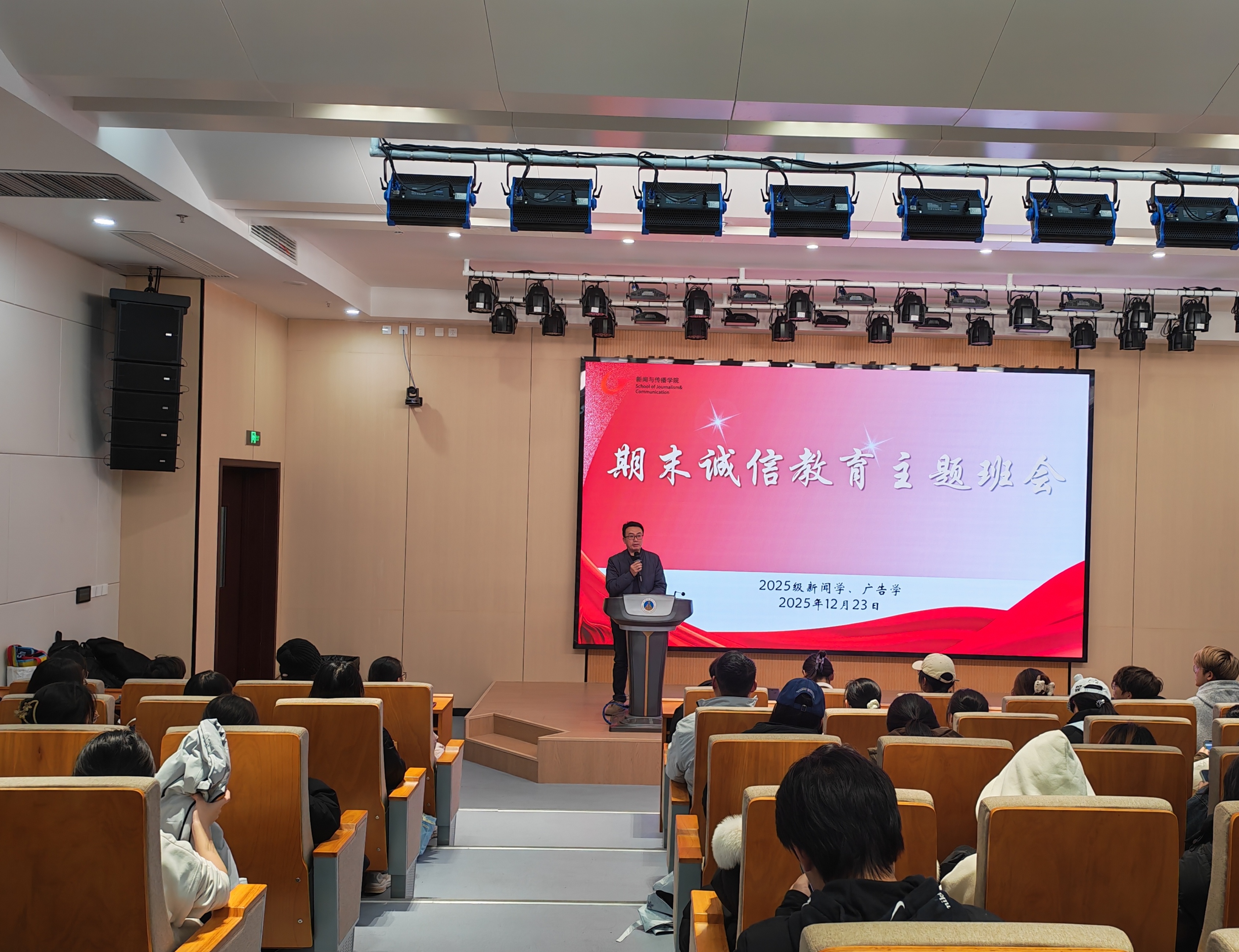 本网讯(bat365在线中国登录入口 陈雨婷 欧阳如意)2025年12月23日,2025级新闻学、广告学于望道楼E101报告厅召开期末诚信考试主题班会,班级全体成员、班级导生参加会议,院党委副书记吴青山出席会议并作指导讲话。会议由辅导员刘成俊主持。